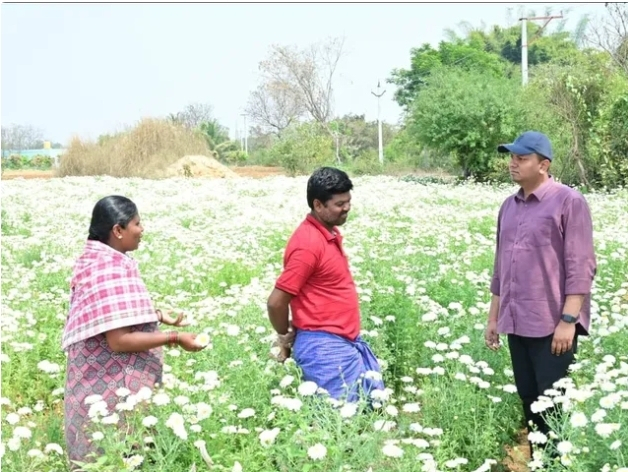ఈ సందర్భంగా రైతు పంట సాగు విధానం, పూల దిగుబడి, స్థానిక మార్కెట్లతో పాటు సమీప పట్టణాలకు పూల విక్రయాల గురించి కలెక్టర్కు వివరించారు. పూలకు డిమాండ్ పెరుగుతున్న నేపథ్యంలో రైతులు ఆధునిక సాగు పద్ధతులు అవలంబించాలని కలెక్టర్ సూచించారు. ఈ కార్యక్రమంలో వ్యవసాయ శాఖ అధికారులు కూడా పాల్గొన్నారు