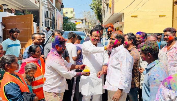 అలాగే తుకారాం గేట్ లోని ఎమ్మెల్యే నివాసం వద్ద జరిగిన హోలీ వేడుకలలో పారిశుద్ధ్య కార్మికులతో కలిసి పాల్గొని అందరికీ హోలీ పండుగ శుభాకాంక్షలు తెలిపారు.