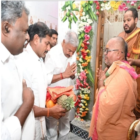 నిర్వాహకులు ఆయనకు పూర్ణకుంభంతో స్వాగతం పలికి, ఆలయంలో ప్రత్యేక పూజల అనంతరం వేద పండితులు స్వామివారి తీర్థ ప్రసాదాలను అందజేశారు