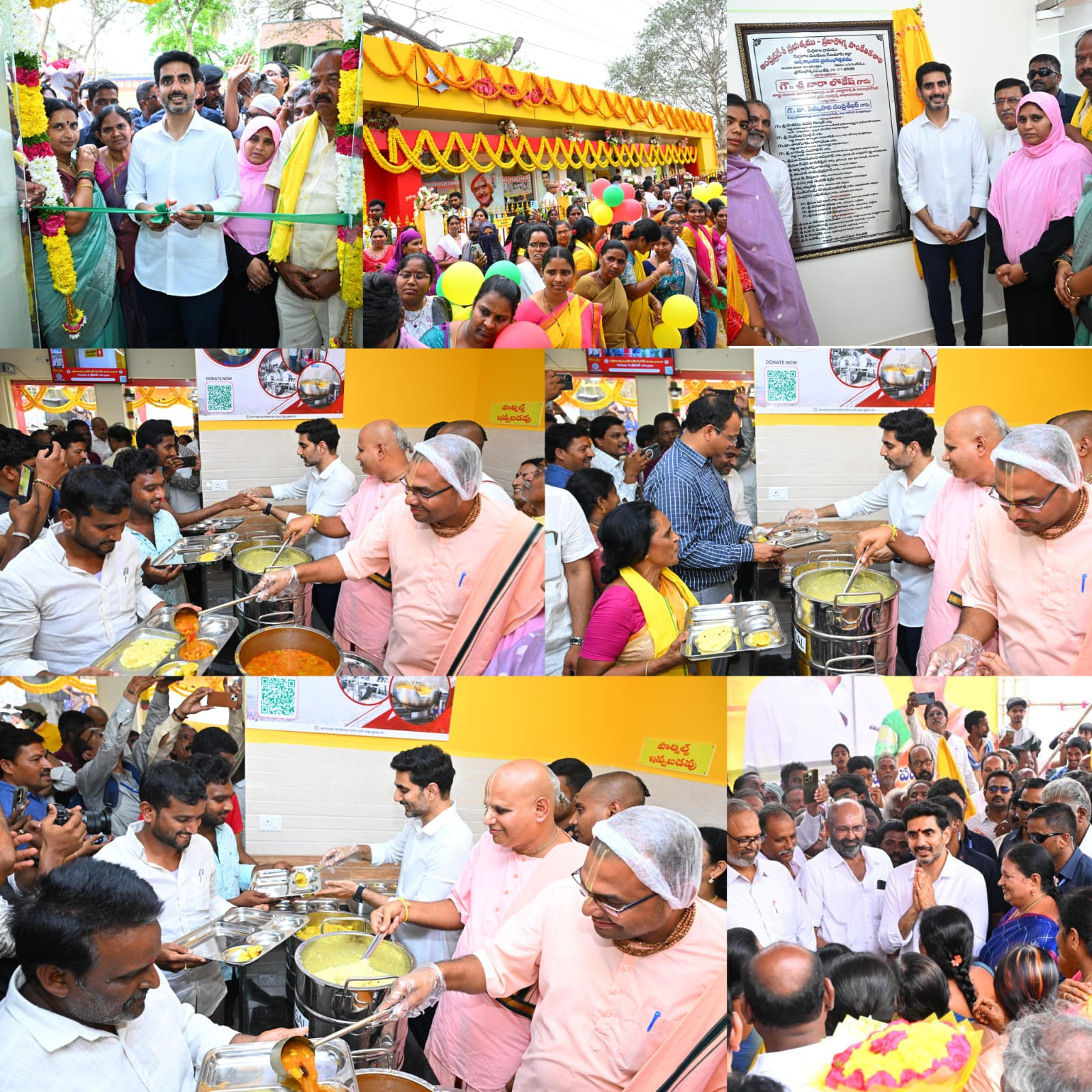 అనంతరం రిబ్బన్ కట్ చేసి అన్న క్యాంటీన్ ను మంత్రి ప్రారంభించారు. ఈ సందర్భంగా ఏర్పాటుచేసిన శిలాఫలకాన్ని ఆవిష్కరించారు. అక్షయపాత్ర సిబ్బందితో కలిసి మంత్రి లోకేష్ సామాన్య ప్రజానీకానికి భోజనం వడ్డించారు. ఈ కార్యక్రమంలో కలెక్టర్ ఏ.తమీమ్ అన్సారియా, టీటీడీ బోర్డు మెంబర్ తమ్మిశెట్టి జానకీ దేవి, గుంటూరు పార్లమెంట్ తెలుగుదేశం పార్టీ ప్రధాన కార్యదర్శి పోతినేని శ్రీనివాసరావు, దుగ్గిరాల మండల టీడీపీ అధ్యక్షురాలు కేసమనేని శ్రీ అనిత తదితరులు పాల్గొన్నారు.
