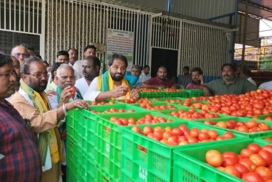 మదనపల్లి టమోటా మార్కెట్లో సోమవారం ఎమ్మెల్యే షాజహాన్ బాషా 15 కిలోల చిన్న క్రేట్ల విధానాన్ని ప్రారంభించారు. ఈ కొత్త విధానం వల్ల రైతులు అధిక లాభాలు పొందవచ్చని, ఆక్షన్ లేకుండా నేరుగా విక్రయాలు జరుపుకోవచ్చని ఆయన తెలిపారు.