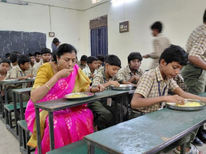 ఈ సందర్భంగా ఆమె మాట్లాడుతూ, మంత్రి నారా లోకేష్ నాయకత్వంలో ‘డొక్కా సీతమ్మ మధ్యాహ్న భోజన పథకం’ ద్వారా విద్యార్థులకు నాణ్యమైన సన్న బియ్యంతో పౌష్టికాహారం అందుతోందని తెలిపారు. గత ప్రభుత్వంలో నాసిరకం భోజనం వల్ల విద్యార్థులు ఇబ్బంది పడ్డారని, ప్రస్తుతం కూటమి ప్రభుత్వంలో పరిస్థితి మెరుగుపడిందని ఆమె పేర్కొన్నారు. విద్యార్థుల ఆరోగ్యం, విద్యా వికాసం కోసం ప్రభుత్వం కట్టుబడి ఉందని స్పష్టం చేశారు.
