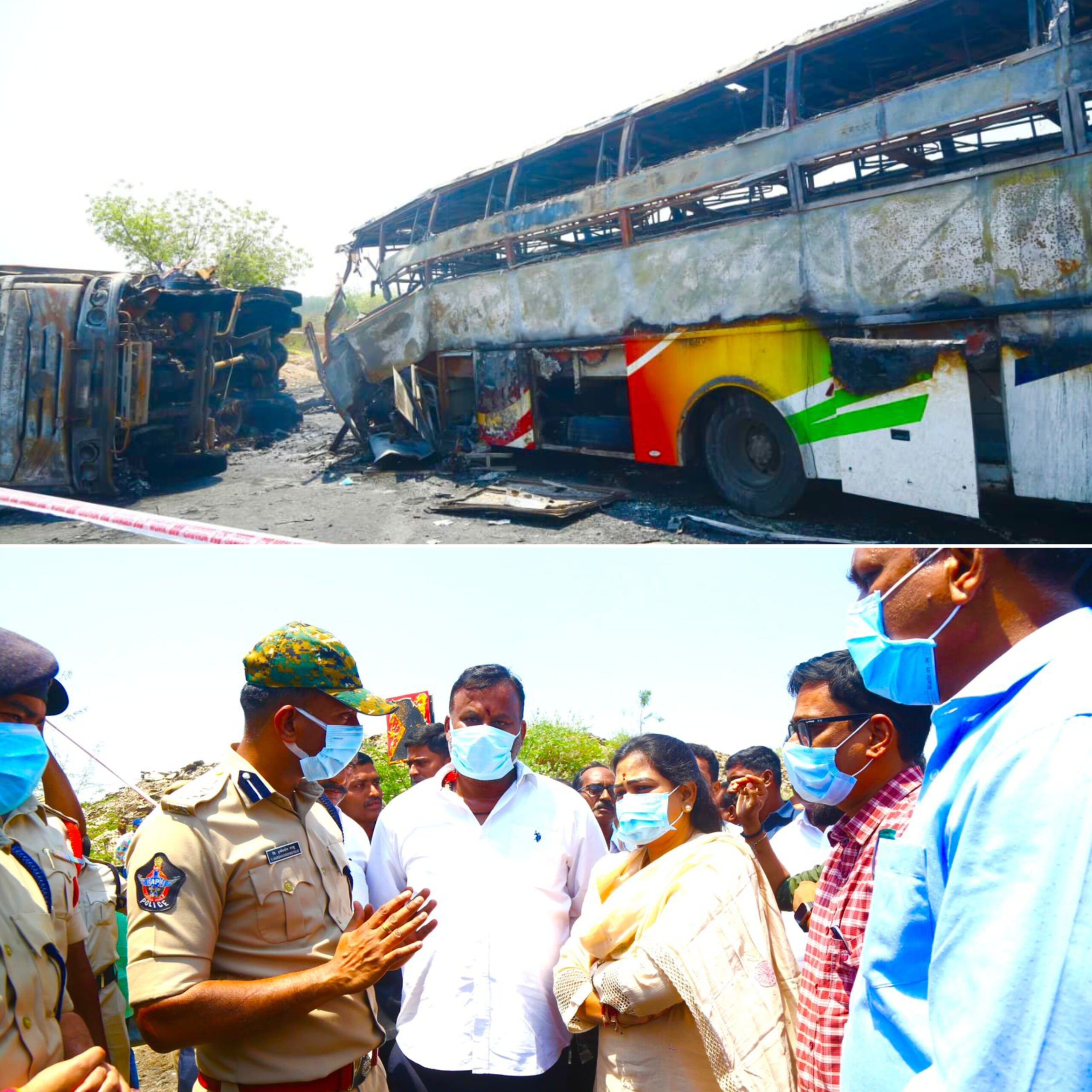 మరో 28 మంది ఆసుపత్రిలో చేర్పించినట్టు మంత్రి వెల్లడించారు బస్సులో మొత్తం 41 మంది ప్రయాణిస్తున్నట్లు సమాచారం కొంతమందిని మెరుగైన చికిత్స కోసం ఒంగోలు తరలించి నట్టు చెప్పారు మృతుల కుటుంబాలకు గాయపడిన వారికి ప్రభుత్వం అన్ని విధాలుగా అండగా నిలుస్తుందని మంత్రి హామీ ఇచ్చారు