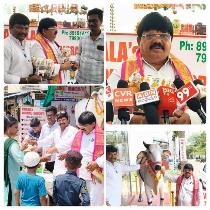 విశ్వబ్రాహ్మణ సంఘం ఎన్టీఆర్ జిల్లా అధ్యక్ష పదవికి పోటీ చేస్తున్న కత్తురోజు రామకృష్ణ ఎన్నికల ప్రచారాన్ని ముమ్మరం చేశారు. జాతీయ కార్పెంటర్స్ డే సందర్భంగా కొండపల్లిలో మజ్జిగ పంపిణీ చేసిన ఆయన, దారుశిల్పుల సమస్యలపై గళమెత్తారు. ముఖ్యంగా కొండపల్లి బొమ్మల తయారీకి ‘తెల్లపునికి’ చెట్ల కొరతను ప్రభుత్వం దృష్టికి తీసుకెళ్లి పరిష్కరిస్తానని హామీ ఇచ్చారు.