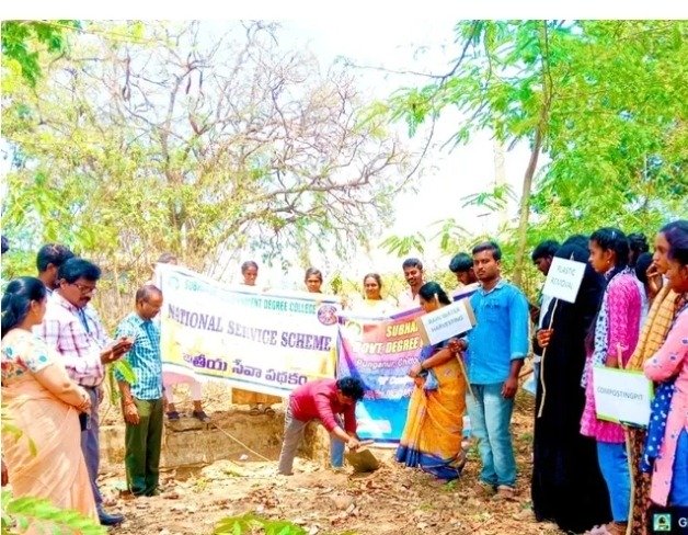 పుంగునూరు పట్టణంలోని శుభారాం ప్రభుత్వ డిగ్రీ కళాశాలలో శనివారం స్వర్ణాంధ్ర స్వచ్యాంద్ర కోఆర్డినేటర్ డాక్టర్ K. సోమరాజు ఆధ్వర్యంలో విద్యార్థులు కళాశాల ప్రాంగణంలో ప్లాస్టిక్ ఏరివేత, రైన్ హార్వెస్టింగ్, కంపోస్ట్ పిట్ వంటి పనులు చేపట్టారు.