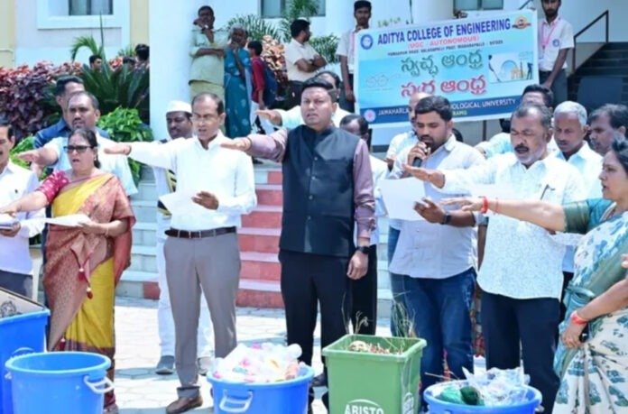 మదనపల్లె జిల్లాలోని అన్ని విద్యాసంస్థలు వ్యర్థ రహిత కేంద్రాలుగా మారాలని జిల్లా కలెక్టర్ నిశాంత్ కుమార్ పిలుపునిచ్చారు. శనివారం పుంగనూరు రోడ్డులోని ఆదిత్య ఇంజినీరింగ్ కాలేజీలో స్వచ్ఛ ఆంధ్ర–స్వర్ణాంధ్ర కార్యక్రమంలో పాల్గొన్న ఆయన, తడి, పొడి, ప్లాస్టిక్, ఎలక్ట్రానిక్ వ్యర్థాలను వేర్వేరుగా నిర్వహించడం తప్పనిసరి అని తెలిపారు.