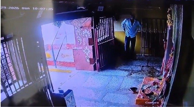 గత కొద్దిరోజులుగా ఆలయంలో ఎల్ఈడి బల్బులు, పూజ సామాగ్రి చోరీకి గురవుతున్నాయని ఆలయ నిర్వాహకులు తెలిపారు. సీసీ కెమెరాల పరిశీలనలో దొంగతనం చేసిన వ్యక్తి దృశ్యాలు రికార్డు అయ్యాయి# కొత్తూరు మురళి.