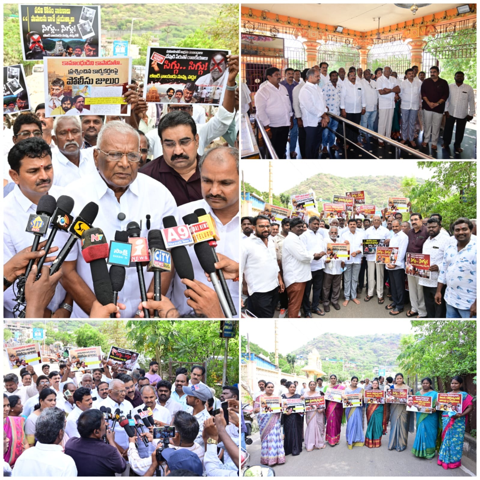 టీటీడీ చైర్మన్ బీఆర్ నాయుడు వ్యవహారశైలిపై మంగళగిరి నియోజకవర్గ సమన్వయకర్త దొంతిరెడ్డి వేమారెడ్డి పిలుపు మేరకు శాంతియుత నిరసన కార్యక్రమం చేపట్టారు. మంగళగిరి పట్టణం ఘాట్ రోడ్డు లోని శ్రీవెంకటేశ్వర ఆలయంలో వెంకటేశ్వర స్వామికి బీఆర్ నాయుడు అనైతిక కార్యకలాపాలు, ఆయన వ్యవహార శైలితో టీటీడీ పవిత్రతను దెబ్బతీస్తున్నాడని ఆయనకు మంచి బుద్ధి ప్రసాదించాలని వైఎస్సార్సీపీ నేతలు ప్రత్యేక పూజలు నిర్వహించారు. ఈ సందర్భంగా మంగళగిరి శాసనమండలి సభ్యులు మురుగుడు హనుమంతరావు మాట్లాడుతూ.. హైందవ ధర్మం పట్ల, తిరుమల సంప్రదాయాల పట్ల అవగాహన లేని వ్యక్తులను టీటీడీ చైర్మన్ వంటి అత్యున్నత పదవిలో కొనసాగించడం భక్తుల మనోభావాలను దెబ్బతీయడమేనని ఆగ్రహం వ్యక్తం చేశారు. *బీఆర్ నాయుడు టీటీడీ చైర్మన్ పదవి నుంచి వెంటనే తొలగించి టీటీడీ పవిత్రతను కాపాడాలని వైఎస్సార్సీపీ నాయకుల డిమాండ్ చేశారు*. ఈ నిరసన కార్యక్రమంలో మంగళగిరి టౌన్ అధ్యక్షులు ఆకురాతి రాజేష్, తాడేపల్లి పట్టణ అధ్యక్షులు వేణుగోపాల సోమి రెడ్డి, తాడేపల్లి మండల అధ్యక్షులు అమరా నాగయ్య, దుగ్గిరాల మండల అధ్యక్షులు తాడిబోయిన శివ గోపయ్య, మరియు వైఎస్సార్ కాంగ్రెస్ పార్టీ రాష్ట్ర జిల్లా మరియు నియోజకవర్గ పార్టీ నాయకులు కార్యకర్తలు వివిధ విభాగ అధ్యక్షులు మహిళ నాయకురాలు, శ్రేణులు పాల్గొన్నాయి.