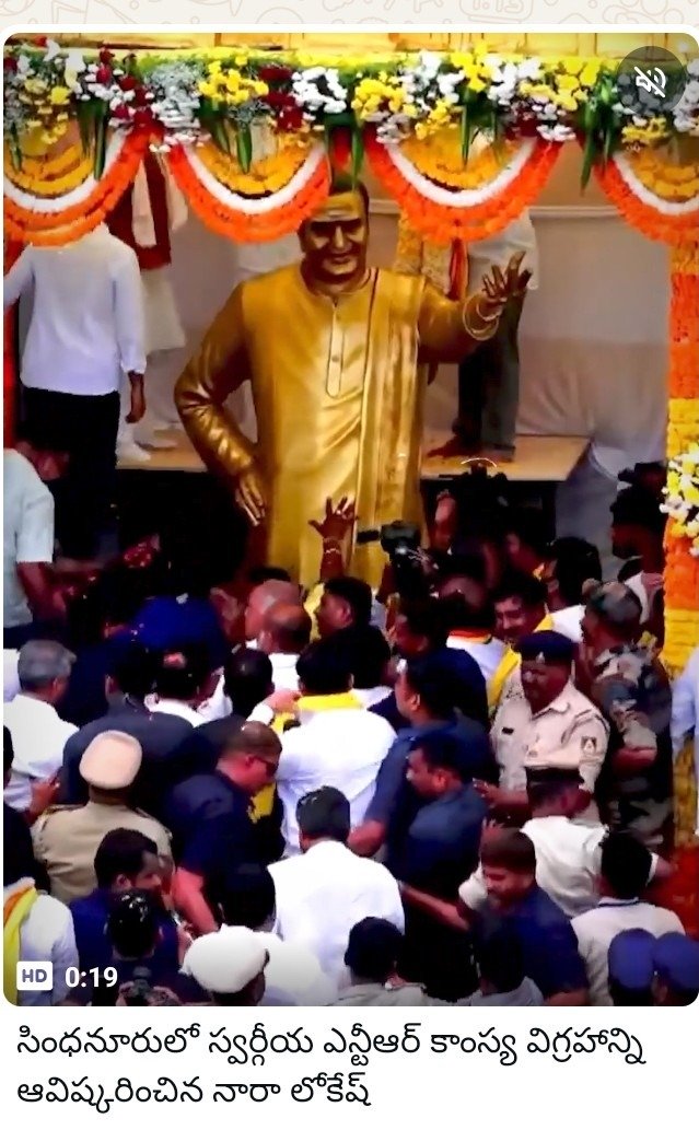 రాయచూర్ జిల్లా సింధనూరు గంగావతి రోడ్డు హోసళ్లీ క్యాంపులోని తెలుగు సంఘం కళ్యాణమండపంలో నూతనంగా ఏర్పాటు చేసిన స్వర్గీయ నందమూరి తారక రామారావు గారి కాంస్య విగ్రహాన్ని కేంద్ర ఉక్కు శాఖ మంత్రి హెచ్.డి. కుమారస్వామి, కేంద్ర రక్షణ శాఖ సహాయ మంత్రి సంజయ్ సేథ్తో కలిసి మంత్రి లోకేష్ ఆవిష్కరించారు.