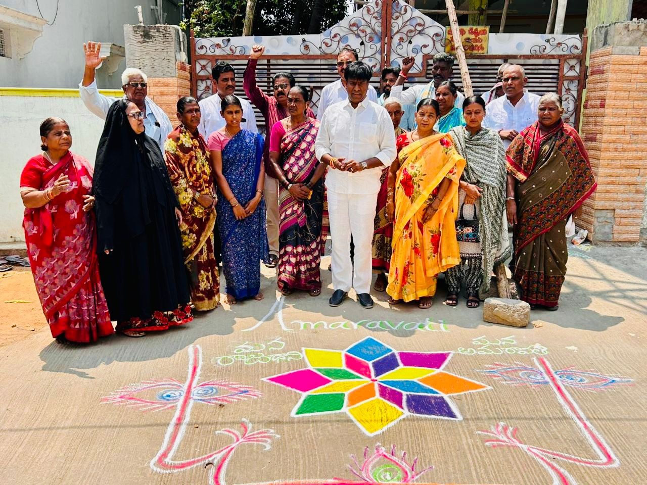 ఐదు కోట్ల ఆంధ్రుల ఆకాంక్షలకు ప్రతీకగా అమరావతి రాజధాని రూపుదిద్దుకుంటోందని ఎమ్మెల్యే డాక్టర్ బీవీ జయనాగేశ్వర్ రెడ్డి గారు తెలిపారు. అమరావతి నిర్మాణానికి రైతులు చేసిన త్యాగాలు చిరస్మరణీయమని, రాష్ట్ర భవిష్యత్తు కోసం ప్రతి ఒక్కరూ ఐక్యంగా నిలవాలని పిలుపునిచ్చారు.ఇళ్ల ముందు అందంగా ముగ్గులు వేసి అమరావతికి మద్దతు తెలిపిన తెలుగుమహిళలను ఎమ్మెల్యే డాక్టర్ బీవీ జయనాగేశ్వర్ రెడ్డి గారు ప్రత్యేకంగా అభినందించి, వారి ఉత్సాహం రాష్ట్రాభివృద్ధికి నిదర్శనమని పేర్కొన్నారు.ఈ కార్యక్రమంలో పార్టీ నాయకులు, కార్యకర్తలు మరియు మహిళలు పాల్గొన్నారు.