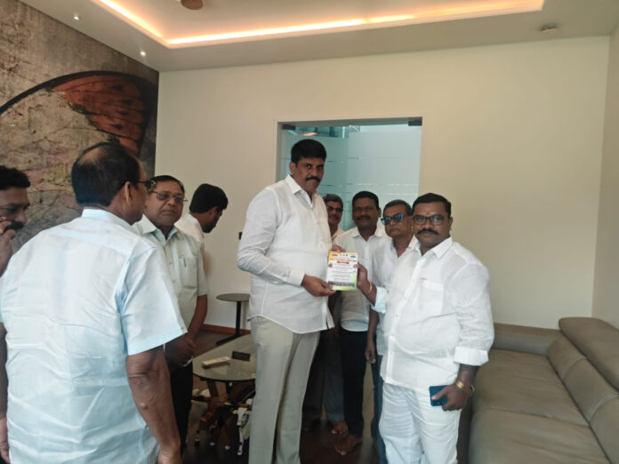 ఏప్రిల్ 19 వ తేదీన బాపట్ల లోని అన్నం సతీష్ ప్రభాకర్ కాపు కల్యాణ మండపంలో రాష్ట్ర స్థాయిలో మాజీ సైనికులకు జరగబోవు ఆంధ్రప్రదేశ్ రాష్ట్ర మాజీ సైనిక సంక్షేమ సంఘం యొక్క ప్రధమ ఆవిర్భావ వార్షికోత్సవానికి ఆహ్వానిస్తూ, ఆహ్వాన పత్రిక ను బాపట్ల శాసన సభ్యులు వేగేశన నరేంద్ర వర్మ రాజు కి అందిస్తున్న మాజీ సైనిక సంక్షేమ సంఘం రాష్ట్ర అధ్యక్షులు తాండ్ర సాంబశివరావు.