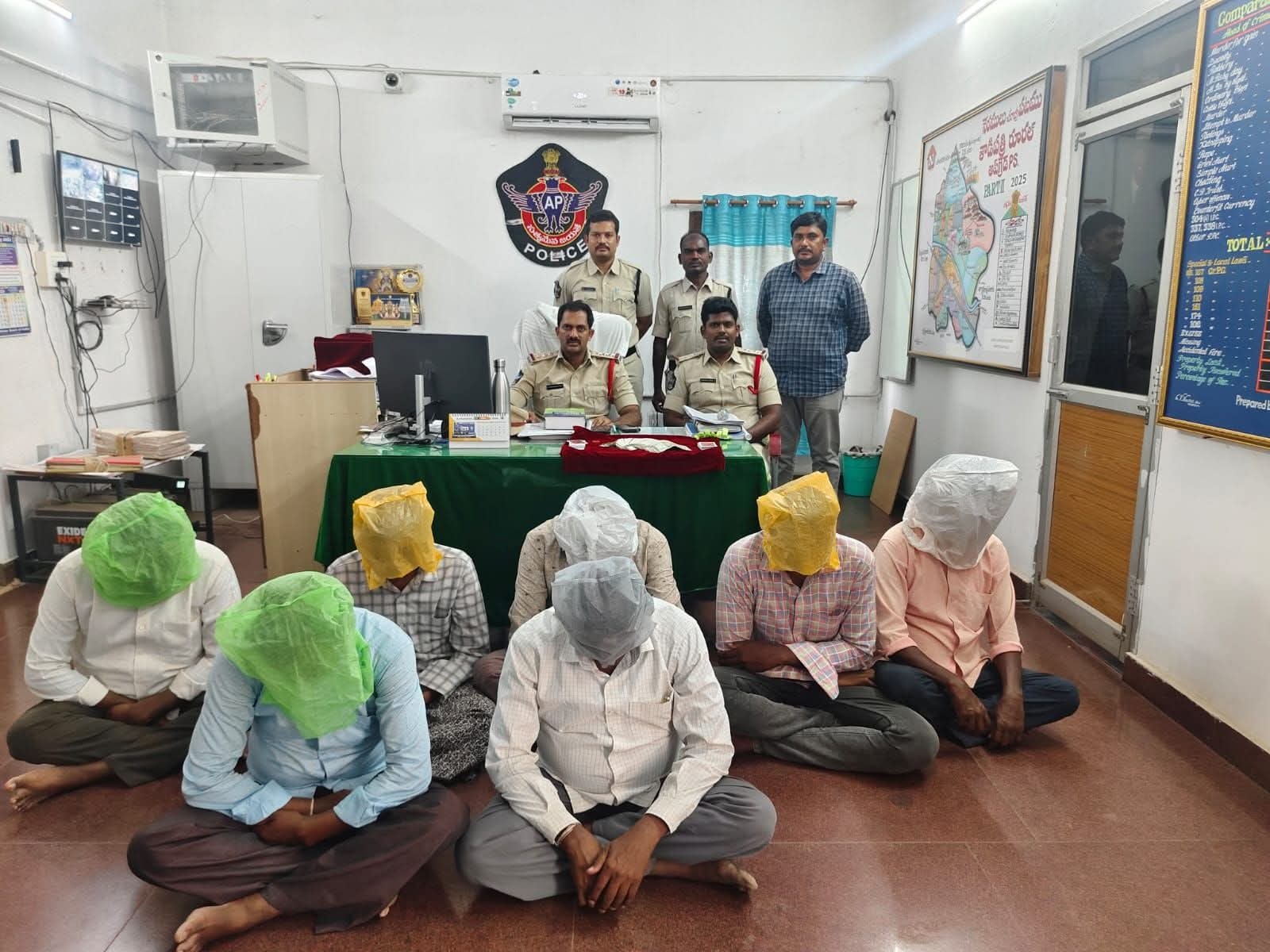 తాడిపత్రి మండలం లో ని అసాంఘిక కార్యకలాపాల పై ఉక్కు పాదం మోపుతూ. పోలీస్ అధికారులు . తాడిపత్రి లో నీ వీరాపురం గ్రామంలో నిత్యం డ్రోన్ కెమెరా ల తో పర్యవేక్షిస్తున్న అధికారులకి పేకటా స్థావరాల కనిపించాయి వెంటనే సి ఐ శివగంగాధర్ రెడ్డి సిబంది తో దాడి చేసి పేకాట ఆడుతున్న 7 మంది ని అదుపులో తీసుకున్నారు వారి నుండి70150 స్వాధీనం చేసుకొని కేసు నమోదు చేసినట్లు తెలిపారు