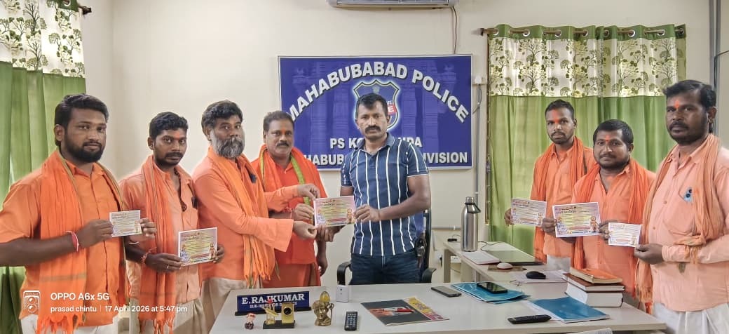 కొత్తగూడ మండల కేంద్రంలో హనుమాన్ సేవా సమితి ఆధ్వర్యంలో నిర్వహించనున్న హనుమాన్ ఉత్సవాల ఏర్పాట్లు ముమ్మరంగా సాగుతున్నాయి. ఈ వేడుకల్లో భాగంగా నిర్వహించే పలు కార్యక్రమాలకు సంబంధించి హనుమాన్ స్వాములు స్థానిక సబ్ ఇన్స్పెక్టర్ రాజ్ కుమార్ ను కలిసి ఆహ్వాన పత్రికను అందజేశారు. ఏప్రిల్ 21న హనుమాన్ ఉత్సవ విగ్రహ ఆవిష్కరణ కార్యక్రమం అత్యంత భక్తిశ్రద్ధల మధ్య జరగనుంది. అలాగే ఏప్రిల్ 22న మండలకేంద్రంలో పురవీధుల్లో హనుమాన్ నగర సంకీర్తన నిర్వహించనున్నారు. భక్తుల కోలాహలం, భజన కీర్తనలతో ఈ కార్యక్రమం కనువిందుగా సాగనుంది.ఈ ఉత్సవాలను విజయవంతం చేయాలని కోరుతూ, హనుమాన్ సేవా సమితి ప్రతినిధులు మరియు హనుమాన్ మాలధారులు స్థానిక పోలీస్ స్టేషన్లో ఎస్సైని కలిసి కరపత్రాన్ని అందజేశారు. ఈ సందర్భంగా ఉత్సవాల నిర్వహణ, భద్రతా ఏర్పాట్లపై చర్చించారు.