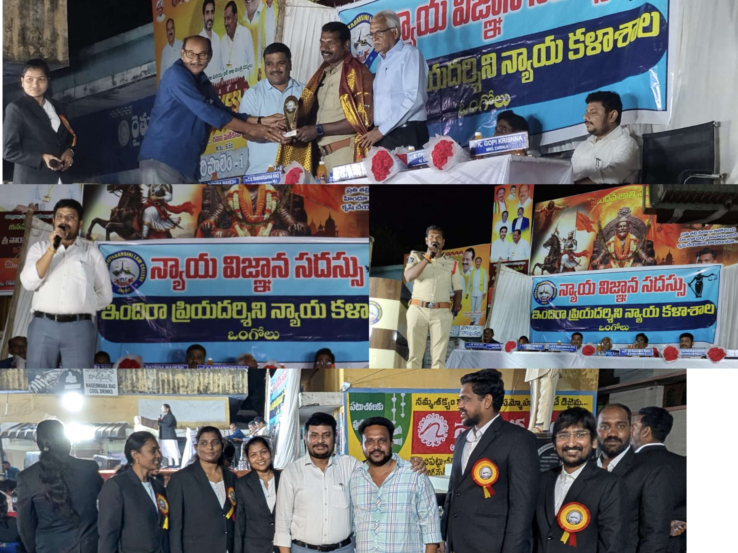 ఎక్కువ గ్రామాలలో ప్రజలే పోలీస్ స్టేషన్లో అవగాహన లేక కేసుల్లో నిందితులుగా బాధ్యతలు అవుతారని చట్టాలన్నీ వివరించడం వల్ల గ్రామ ప్రజలకు మేలు చేకూరుతుందని అన్నారు.ఈ కార్యక్రమంలో కళాశాల ప్రెసిడెంట్ డా.కె.నరసింగరావు,సెక్రటరీ అండ్ కరస్పాండెంట్ సివి రామకృష్ణారావు,రేటైర్డ్ అడిషనల్ ఎస్పీ సుంకర సాయిబాబు,కళాశాల ప్రిన్సిపల్ నటరాజ కుమార్, ముఖ్య అతిథులు గా చీరాల మండల ఎమ్మార్వో గోపికృష్ణ, చీరాల రూరల్ ఎస్ఐ చంద్రశేఖర్ ,గ్రామ సెక్రటరీ నీలిమ,కళాశాల విద్యార్థులు పాల్గొని చట్టాలు సామాన్య ప్రజలు తెలుసుకోవడం అవసరమని తెలియచేశారు .