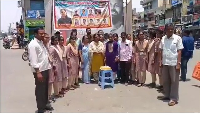 491 సాధించి మండలం టాపర్గా నిలిచింది. ఈ సందర్భంగా కళాశాల ప్రిన్సిపల్ రమా ఆధ్వర్యంలో గురువారం ఎన్టీఆర్ సర్కిల్ వద్ద కేక్ కట్ చేసి విజయోత్సవ సంబరాలు నిర్వహించారు. ఈ కార్యక్రమంలో ఇన్చార్జ్ ఎంఈఓ నటరాజన్ రెడ్డి, అధ్యాపకులు పాల్గొన్నారు# కొత్తూరు మురళి.