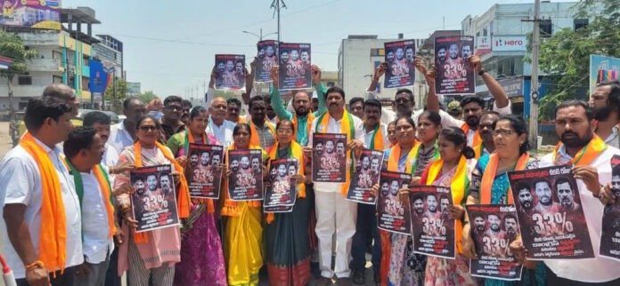 చట్ట సభల్లో మహిళలకు 33% రిజర్వేషన్ కల్పించాలని ఉద్దేశంతో దేశ ప్రధాని నరేంద్ర మోడీ పార్లమెంట్ లో బిల్లు ప్రవేశపెట్టడంతో కాంగ్రెస్ పార్టీ 33% మహిళ బిల్లును వ్యతిరేకించడంతో బిజెపి మహిళల నాయకురాళ్లు మండిపడ్డారు.