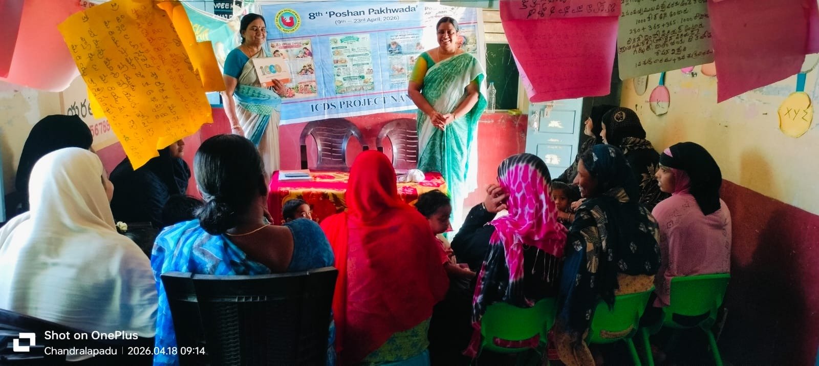 ఎన్టీఆర్ జిల్లా చందర్లపాడు మండలం చందర్లపాడుగ్రామం లో అంగన్వాడి సెంటర్ 5 నందు 18 ఏప్రిల్ 2026 శనివారం న 8వ పోషణ పక్వాడ కార్యక్రమం ఐ సి డి ఎస్ ప్రాజెక్ట్ నందిగామ( సిడిపిఓ)లక్ష్మీ భార్గవి ఆదేశానుసారం 9/ ఏప్రిల్ 2026 నుండి23 ఏప్రిల్ /2026 వరకు ఈ కార్యక్రమాలు నిర్వహిస్తాము. ఈ కార్యక్రమం లోని ముఖ్య ఉద్దేశ్యములు, తల్లి మరియు శిశుపోషణ 0 నుండి 3 సంవత్సరాల పిల్లల మెదడు అభివృద్ధి చెందటము మరియు 3 నుండి 6 సంవత్సరాల పిల్లల ఆట ఆధారిత విద్యా అలాగే సామాజ యెక్క పాత్ర, మరియు జంక్ ఫుడ్స్ తినడం వల్ల వచ్చు అనారోగ్య సమస్యలు స్క్రీన్( సెల్ ఫోన్లు టీవీలు ) అందుబాటులో ఉంచకపోవడం ప్రారంభ విద్య మరియు