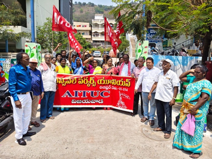విజయవాడ మున్సిపల్ వర్కర్స్ యూనియన్ ఏఐటియుసి ధర్నా