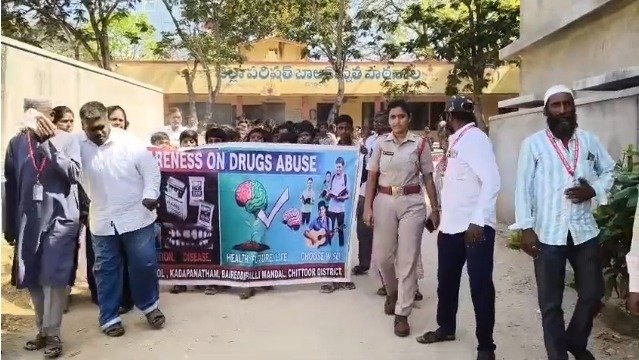పలమనేరులో విద్యార్థులతో డ్రగ్స్ పై అవగాహన ర్యాలీ