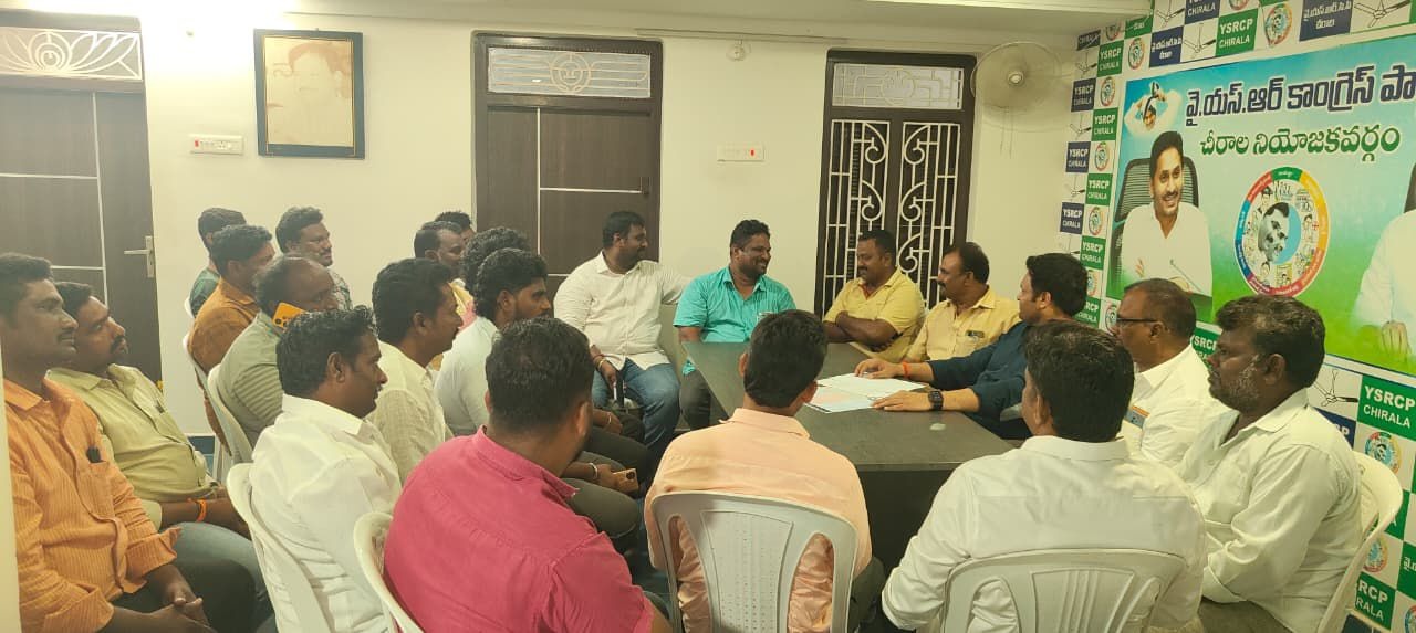 చీరాల మండలం రామకృష్ణాపురం క్యాంపు కార్యాలయం నందు మండల పార్టీ అధ్యక్షులకు,పట్టణ పార్టీ అధ్యక్షులకు, గ్రామ పార్టీ అధ్యక్షులకు,వార్డు కమిటీ అధ్యక్షులకు,అనుబంధ విభాగాల అధ్యక్షులకు, డిజిటల్ టీం సభ్యులతో సమావేశం నిర్వహించిన *చీరాల నియోజకవర్గ వైఎస్ఆర్ కాంగ్రెస్ పార్టీ ఇంచార్జ్ కరణం వెంకటేష్ బాబు.