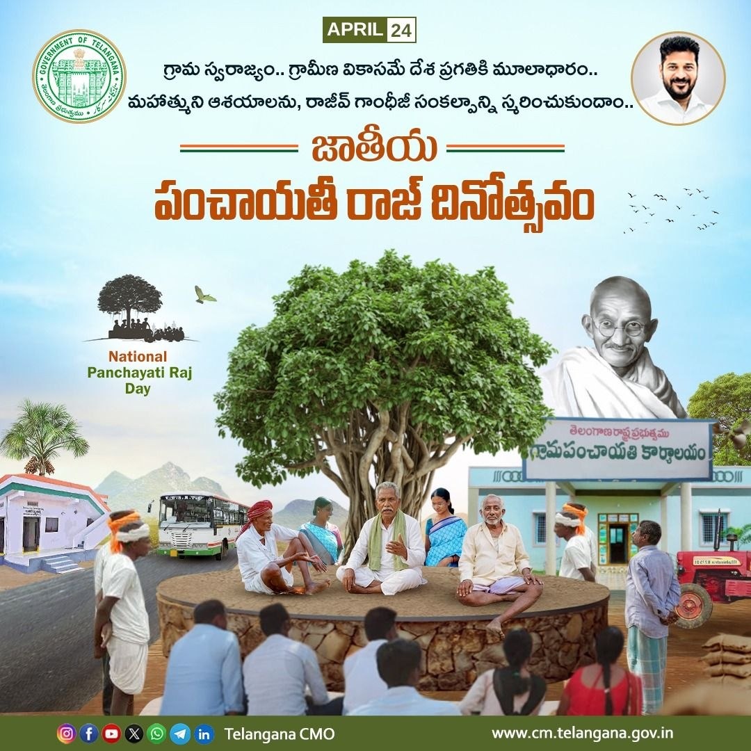 🔹 స్థానిక స్వయం పరిపాలన గ్రామీణ ప్రజల జీవితాల్లో సామాజిక, ఆర్థిక, సాంస్కృతిక మార్పులతో పాటు స్వయం సమృద్ధి దిశగా గ్రామీణ భారతదేశాన్ని ముందుకు నడిపిస్తుంది” అని ముఖ్యమంత్రి గారు ఒక సందేశంలో పేర్కొన్నారు. National Panchayat Raj Day