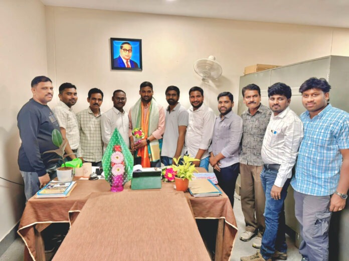 స్థానిక మంచిర్యాల జిల్లాలో శ్రీరాంపూర్ ఏరియా ఎస్సీ, ఎస్టీ వెల్ఫేర్ అసోసియేషన్ reg.no (1630/1982) వైస్ ప్రెసిడెంట్ చెన్నూరి శ్రీనివాస్ గారి ఆధ్వర్యం లో24.04.2026 శుక్రవారం రోజు మందమర్రి ఏరియాలో సింగరేణి ఉద్యోగిగా విధులు నిర్వర్తించి గ్రూప్ -1 లో సెలెక్ట్ అయి మంచిర్యాల జిల్లా లో కార్మిక శాఖ అసిస్టెంట్ కమిషనర్ గా వచ్చిన దుర్గం క్రాంతికుమార్ గారిని కలెక్టర్ ఆఫీసులో మర్యాద పూర్వకంగా కలిసి సన్మానించడం జరిగింది.