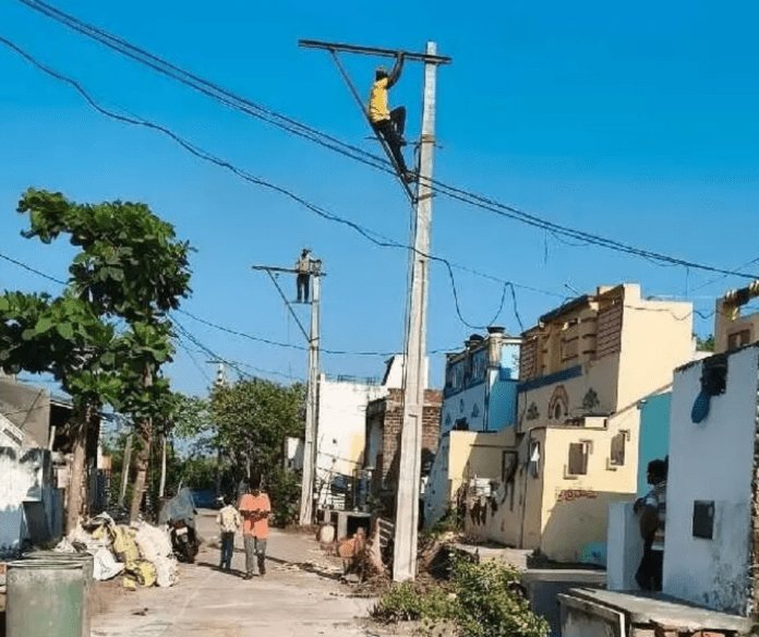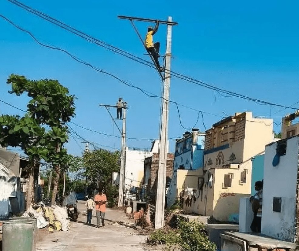ప్రమాదకంగా ఉన్న విద్యుత్ వైర్లను సరిచేసిన సిబ్బంది