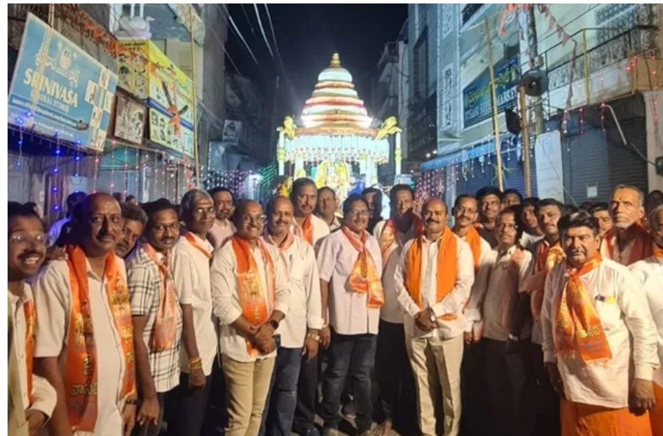 అన్నదాన కార్యక్రమం నిర్వహించి భక్తులకు ప్రసాదం పంపిణీ చేశారు. ఈ కార్యక్రమంలో అధ్యక్షుడు బింగి పాండు, ట్రెజరర్ నాగరాజు, ఉపాధ్యక్షులు యల్లంపల్లి ప్రశాంత్, లక్కీ టైల్స్ మాల్ నగేష్, తో పాటు ఆర్యవైశ్య సంఘం, వాసవి క్లబ్, మహిళా సంఘం, యువజన సంఘం సభ్యులు పాల్గొన్నారు.