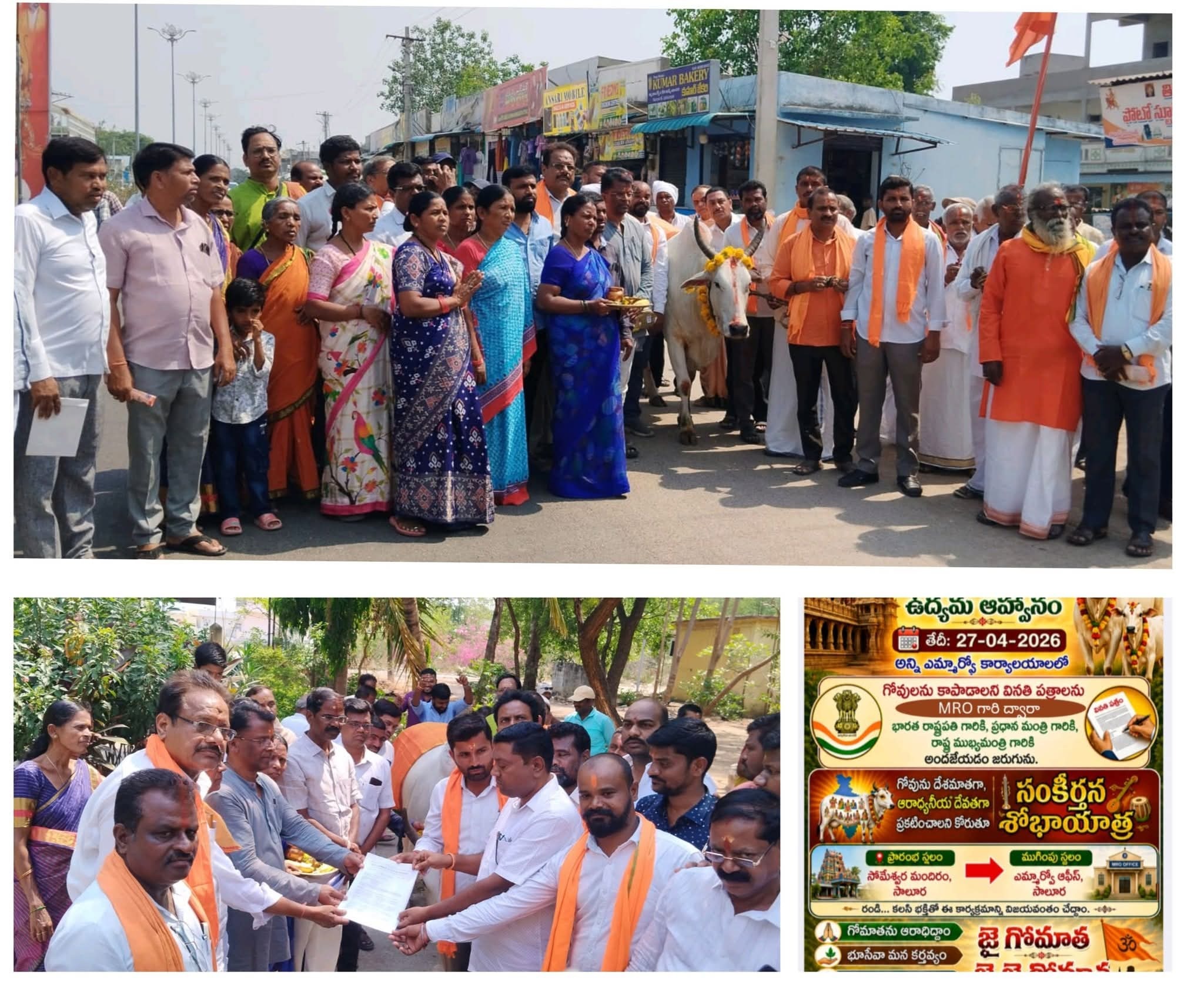 South ZoneTelangana నిజామాబాద్: గోమాతను జాతీయప్రాణిగా ప్రకటించాలి By Bharat Aawaz - 28 April 2026 0 0 Share FacebookXWhatsAppLinkedinReddItPrintTelegramCopy URL గో మాతను జాతీయ ప్రాణి గా ప్రకటించారని నవీపేట్ లో శోభా యాత్రగా ప్రధాన వీధుల గుండా వెళ్లి తాహసిల్దార్ గారికి వినతి పత్రం సమర్పించడం జరిగింది.