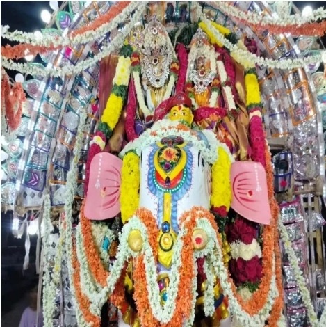 సోమవారం రాత్రి ఉత్సవమూర్తులను గజ వాహనంపై మేళ తాళాలతో ఊరేగించారు. ఈ సందర్భంగా భక్తులు కాయ, కర్పూర హారతులతో నీరాజనాలు పలికారు. వాహనం ముందు ఏర్పాటుచేసిన సాంస్కృతిక కార్యక్రమాలు భక్తులను ఆకట్టుకున్నాయి# కొత్తూరు మురళి..